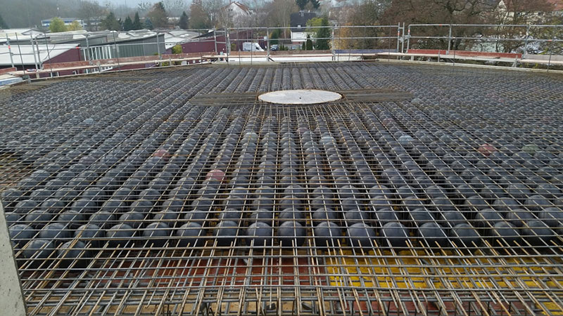 Länge = 25,00 m, Breite = 15,24 m, Höhe = 11,24 m. Der zweite Baukörper wurde als Oktagon (Achteck) konzipiert. Als Besonderheit - aus Statischer Sicht - kam hier eine Hohlkörperdecke (Bubble-Decke) mit einer Stützweite von 15,50 m zum Einsatz, so konnte bei der notwendigen großen Spannweite das Gewicht der Decke reduziert werden.